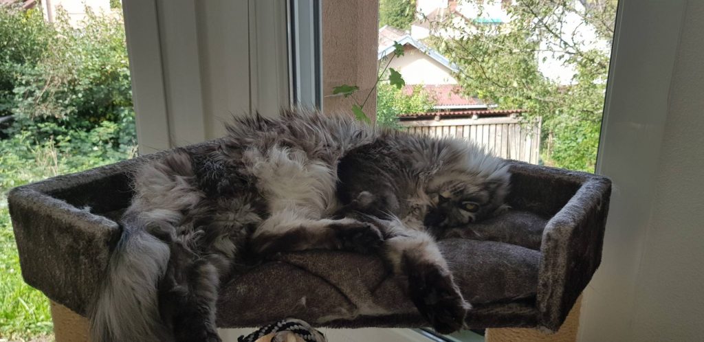 • Uros (rebaptisé Uzi) est toujours le nounourson le plus gros de la portée (5kg), il vit avec chats, chiens, poules, canards et profite abondamment du canapé et des lits de la maison. Un monsieur ronron aux grosses patounes.