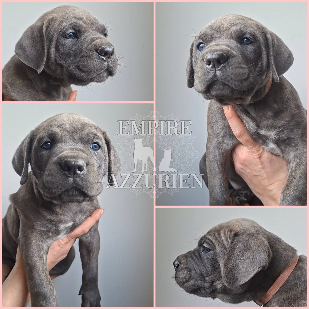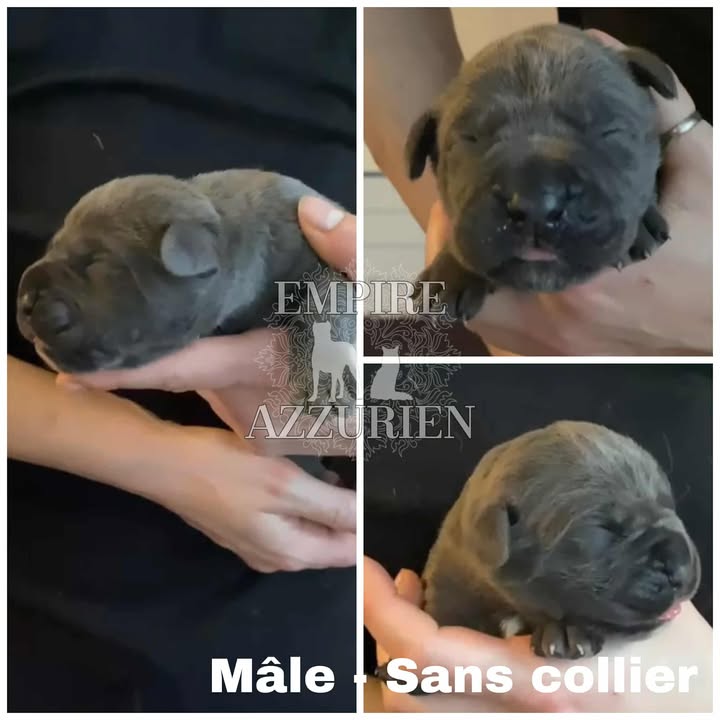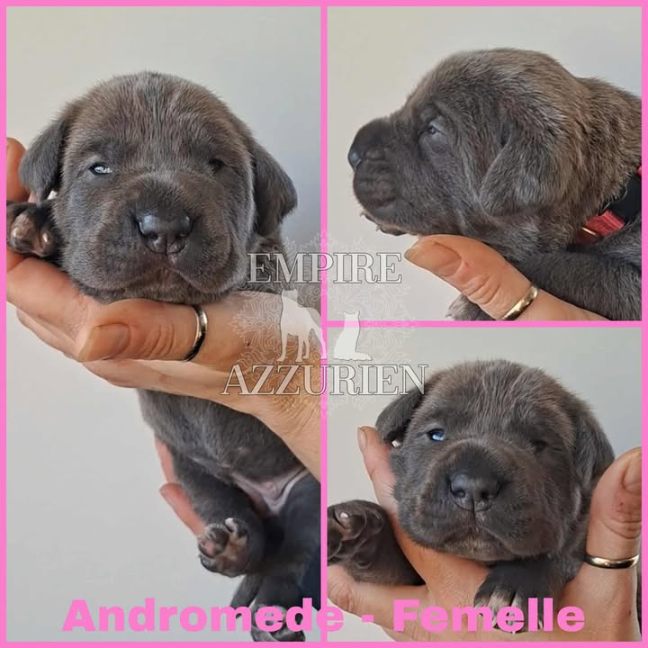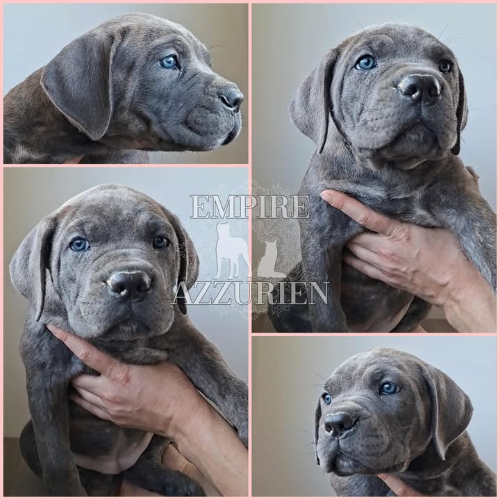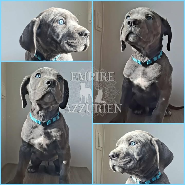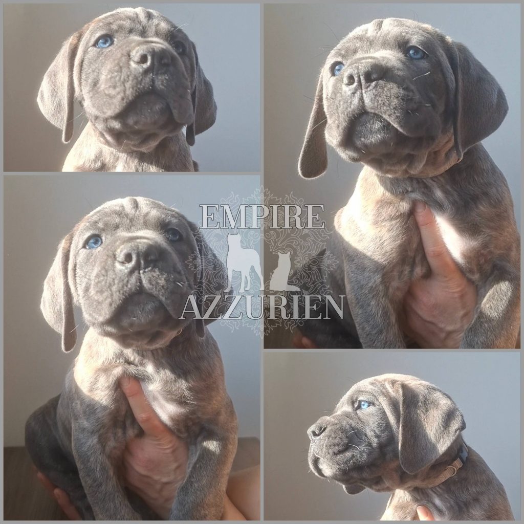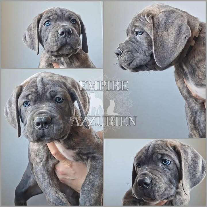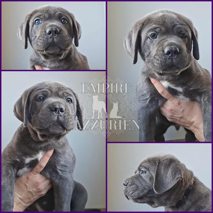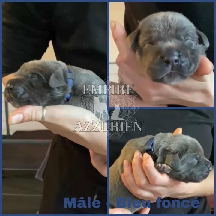 Femelle grise (/bleue). Testée officiellement pour la dysplasie hanches et coudes (HD-B / ED-0). Identifiée par ADN. Négative à la DSRA : N/N.