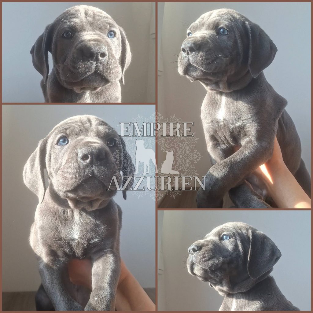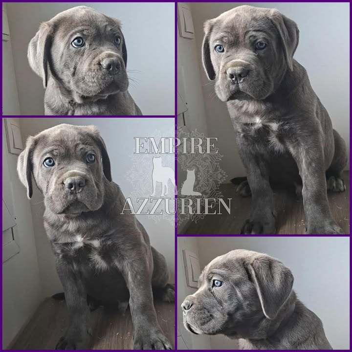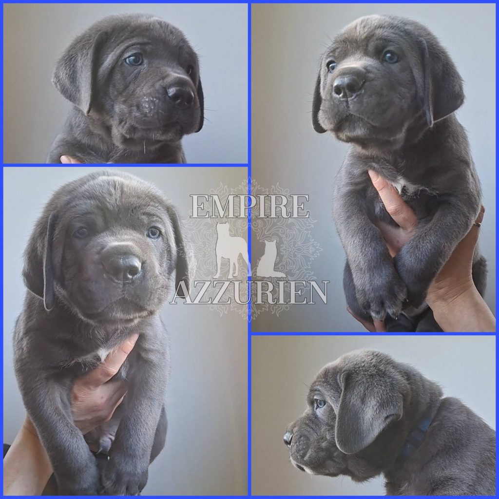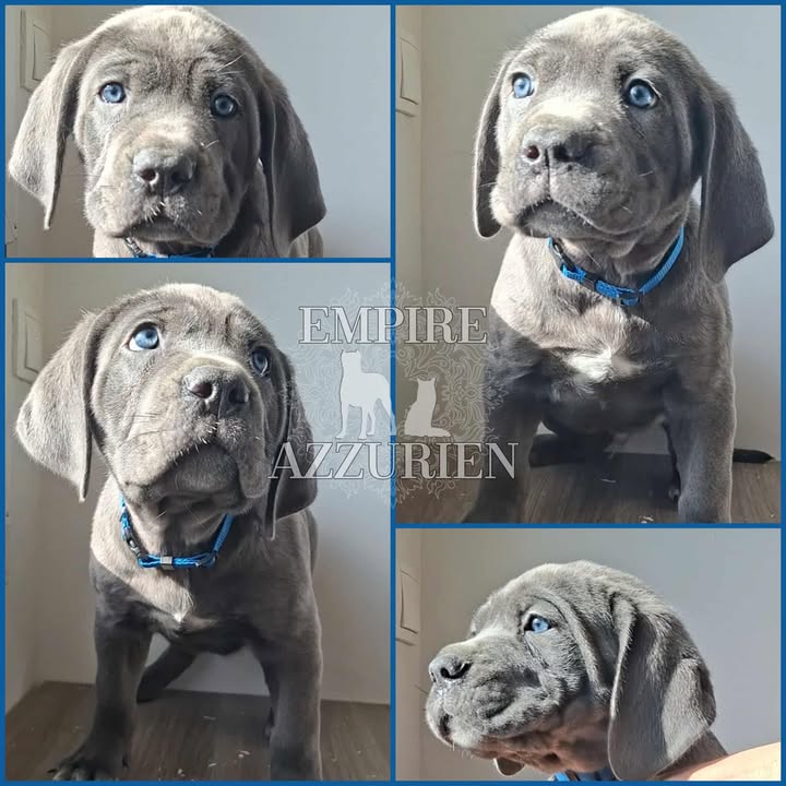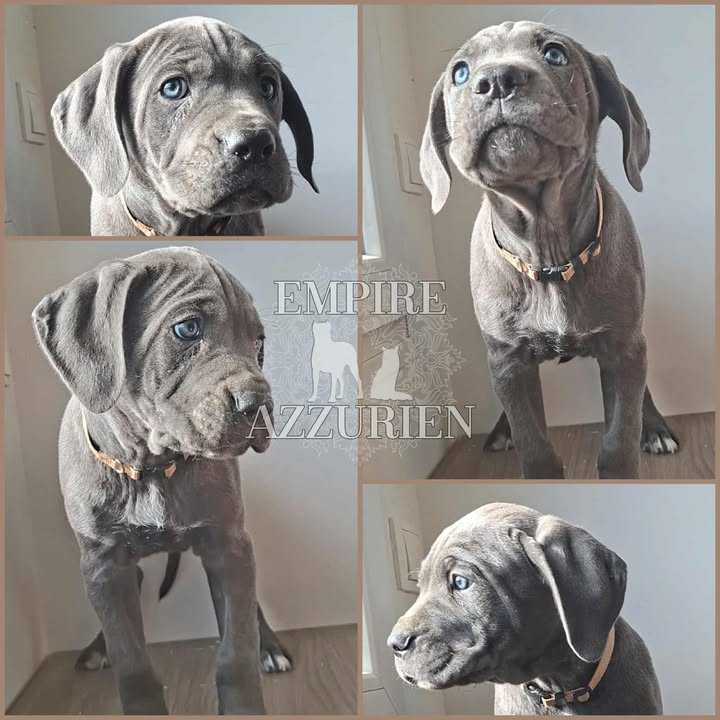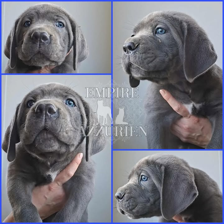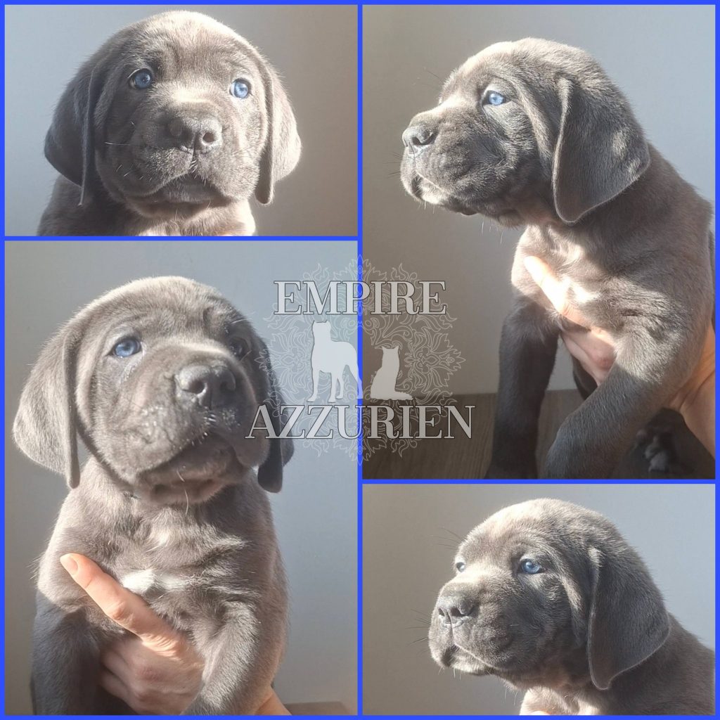Femelle grise (/bleue). Testée officiellement pour la dysplasie hanches et coudes (HD-B / ED-0). Identifiée par ADN. Négative à la DSRA : N/N.