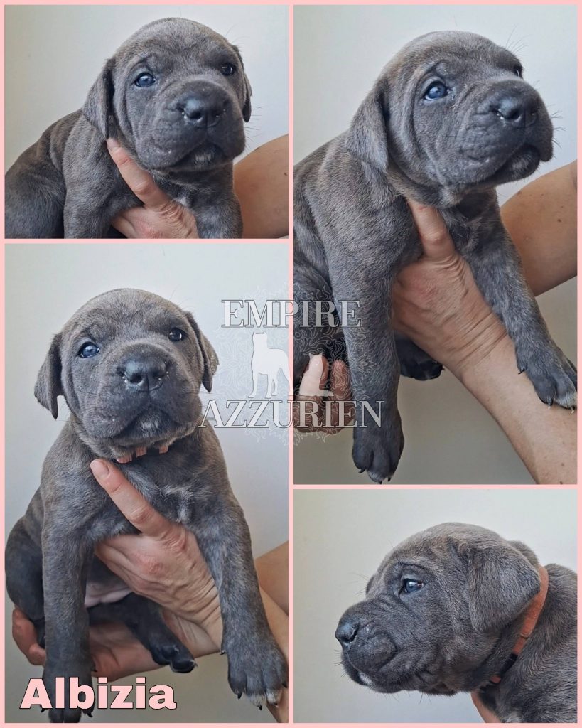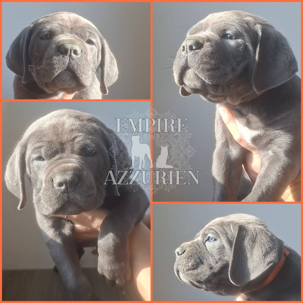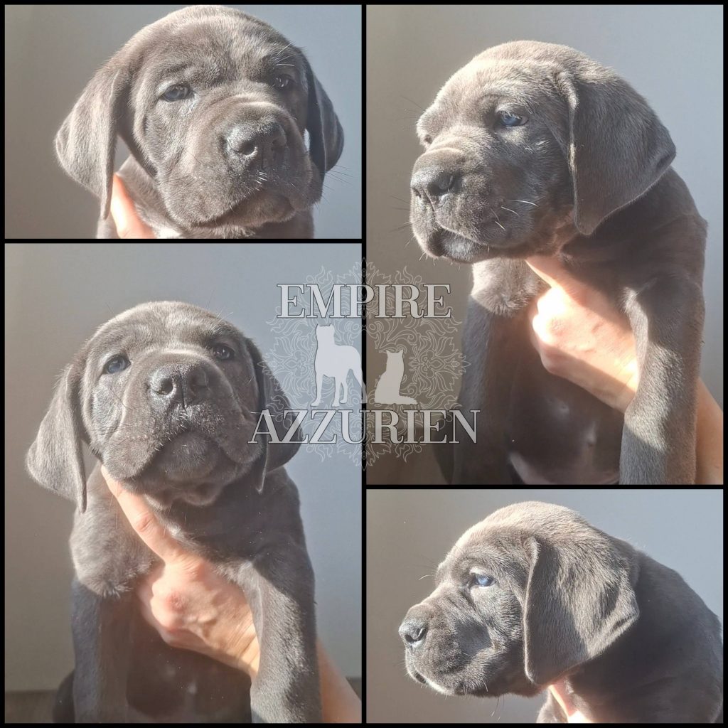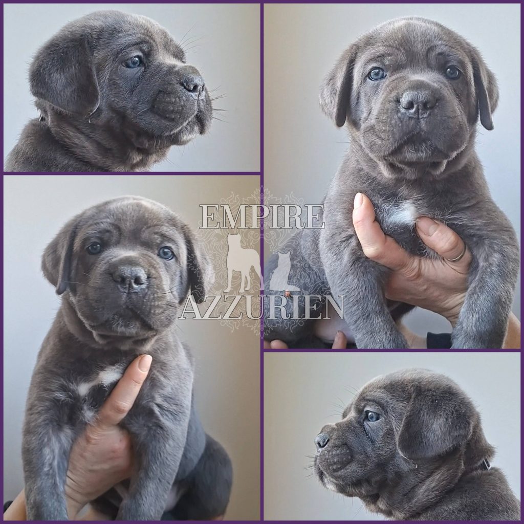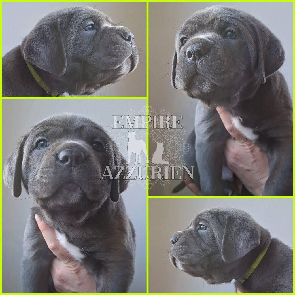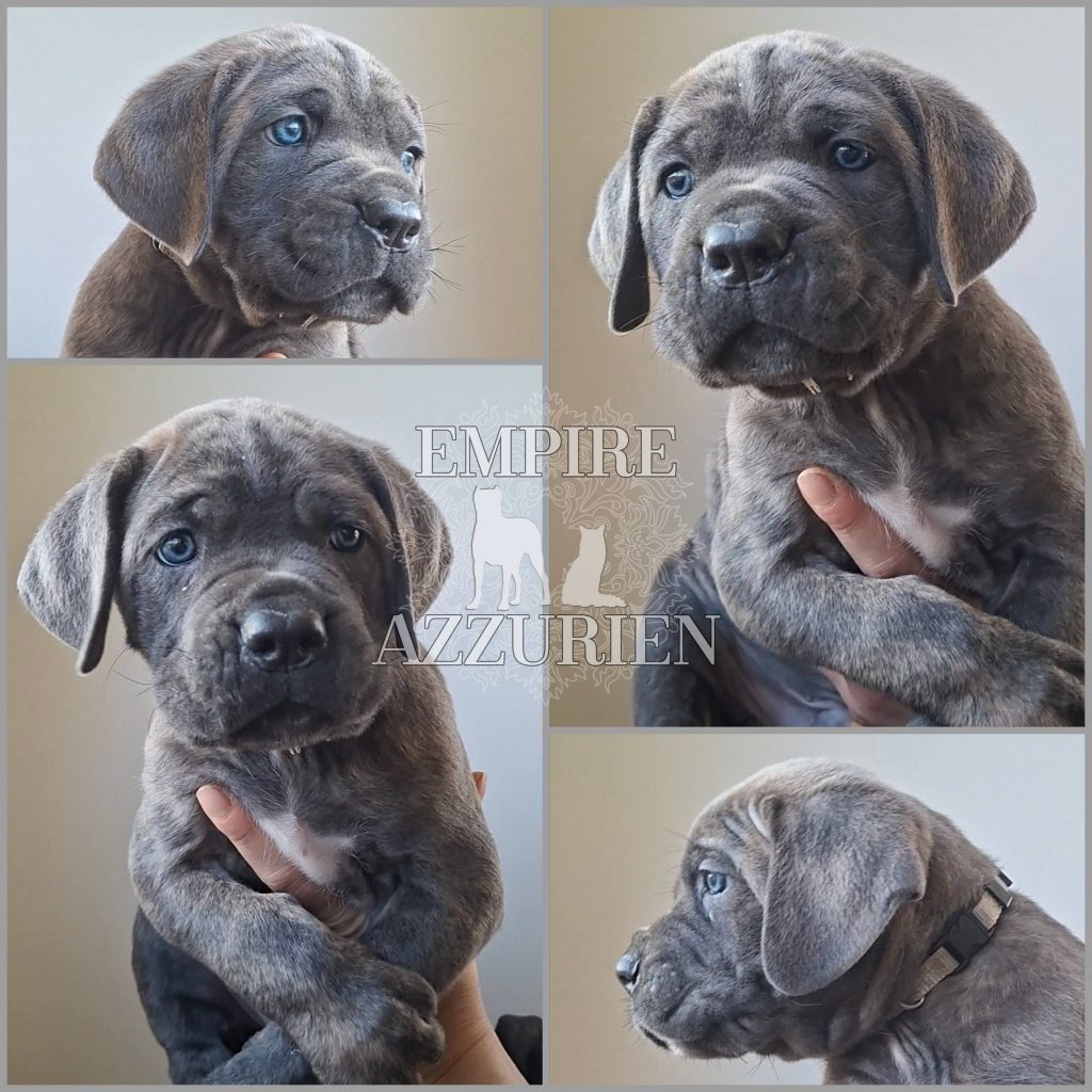 Femelle grise (/bleue). Testée officiellement pour la dysplasie hanches et coudes (HD-B / ED-0). Identifiée par ADN. Négative à la DSRA : N/N.
