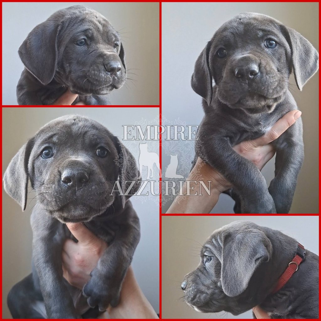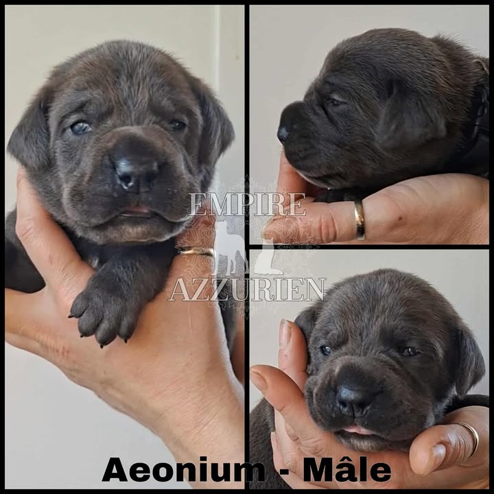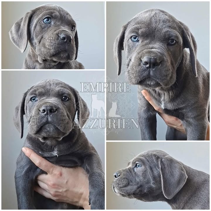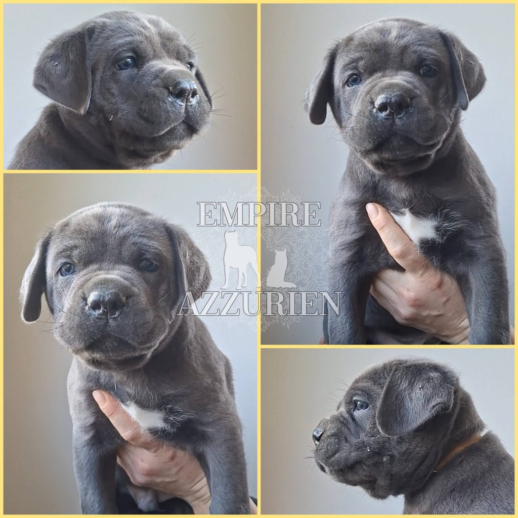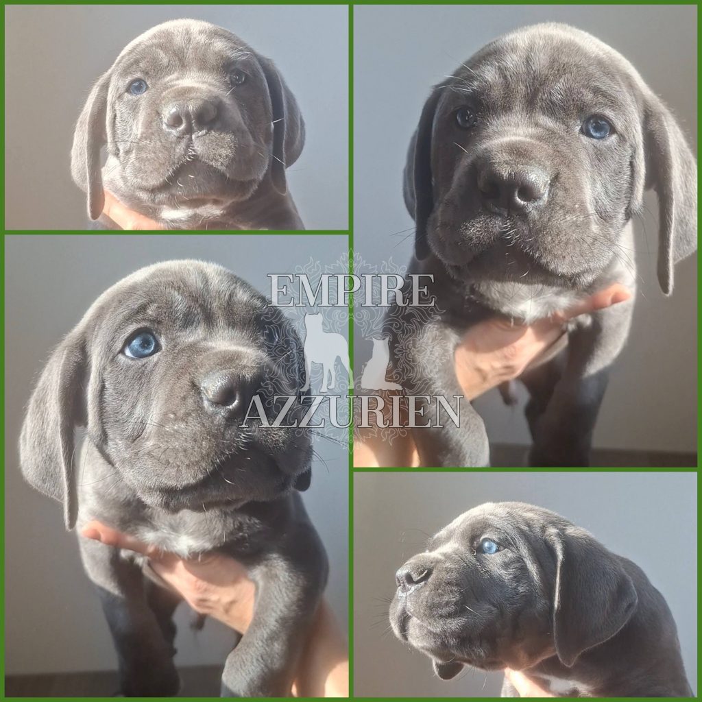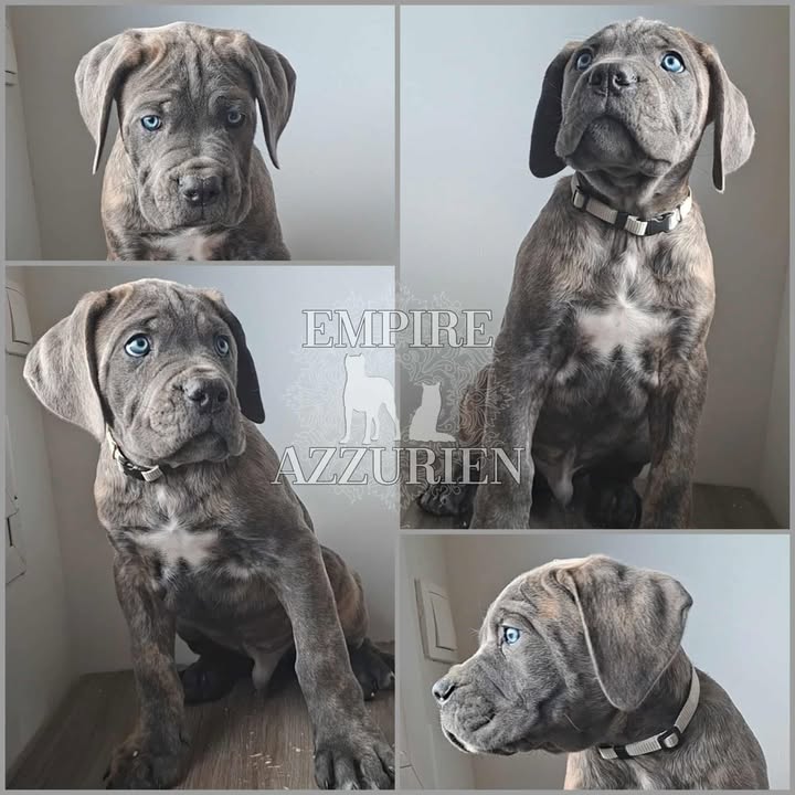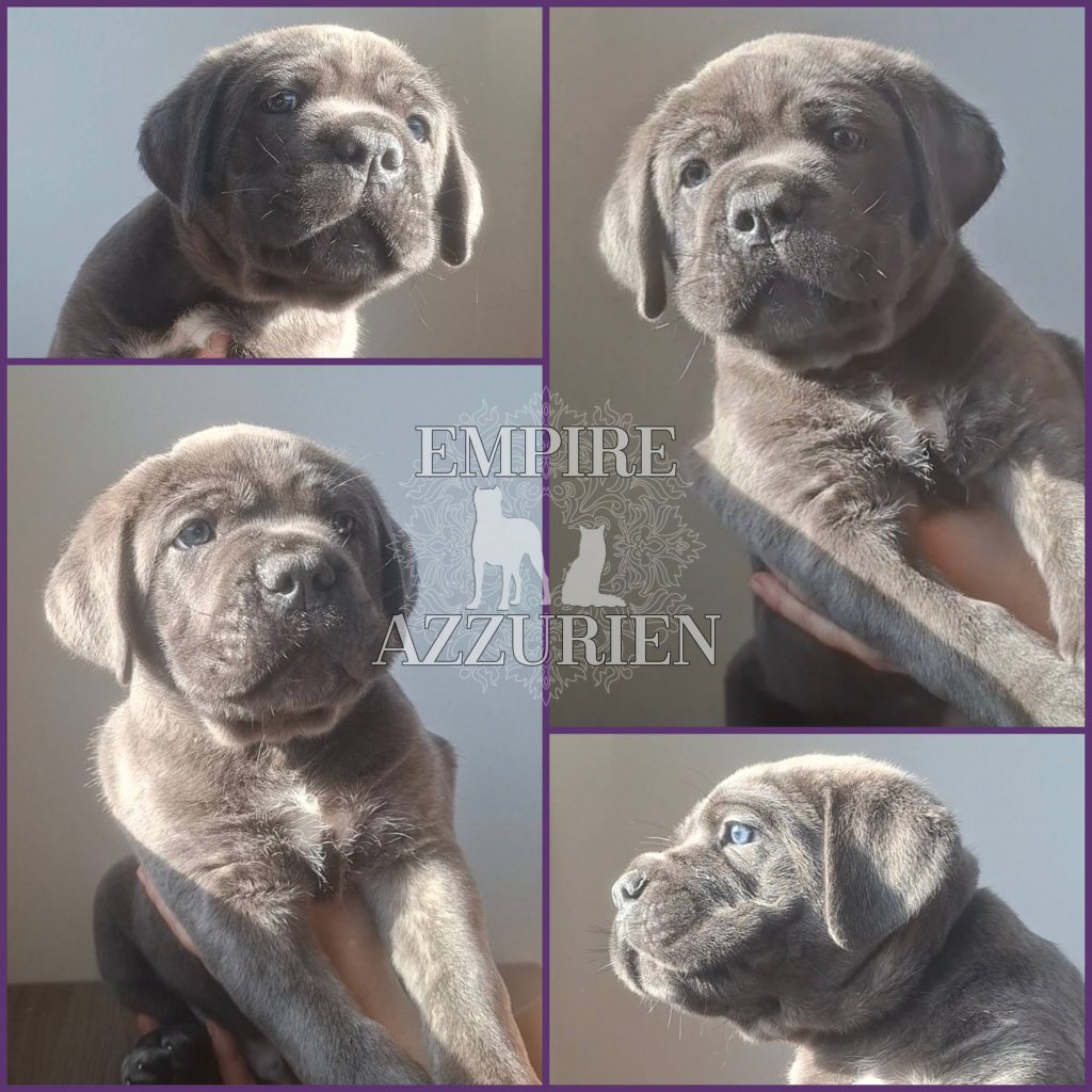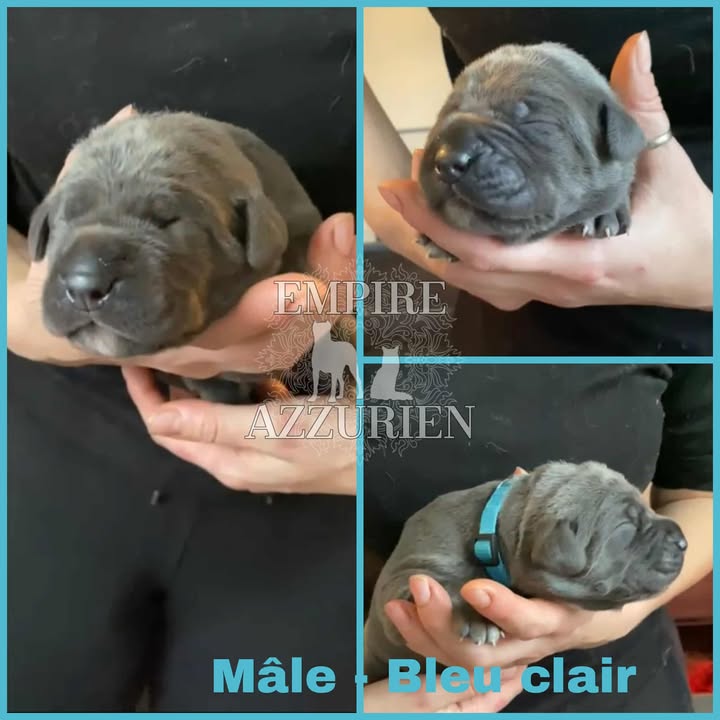 Femelle grise (/bleue). Testée officiellement pour la dysplasie hanches et coudes (HD-B / ED-0). Identifiée par ADN. Négative à la DSRA : N/N.