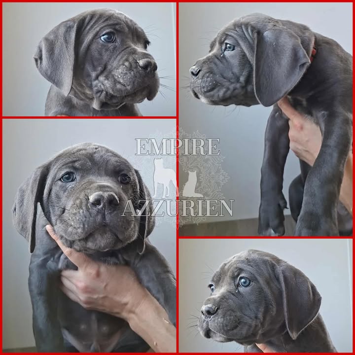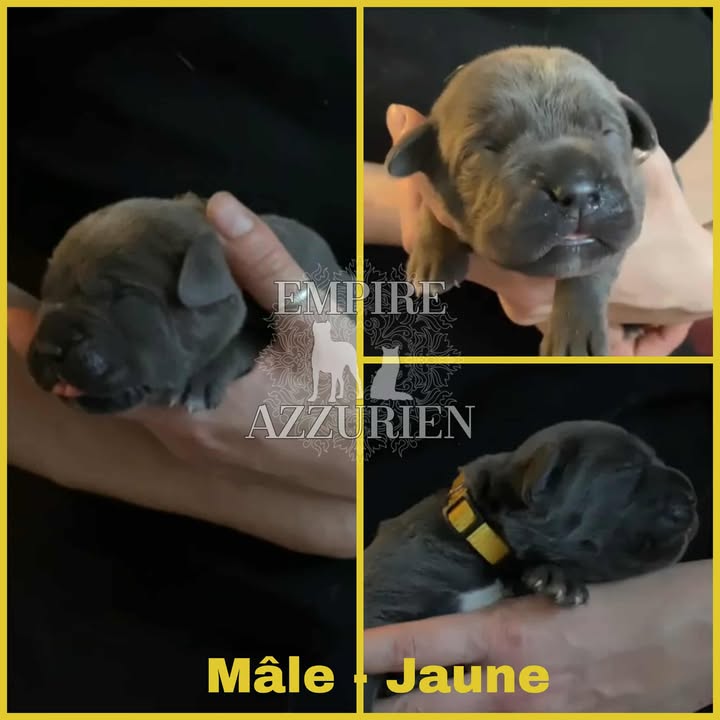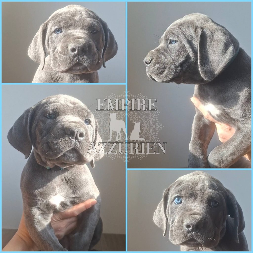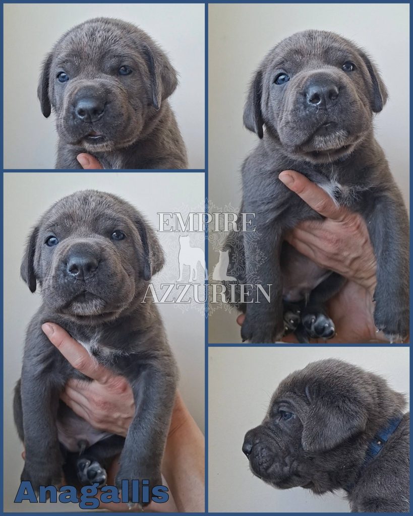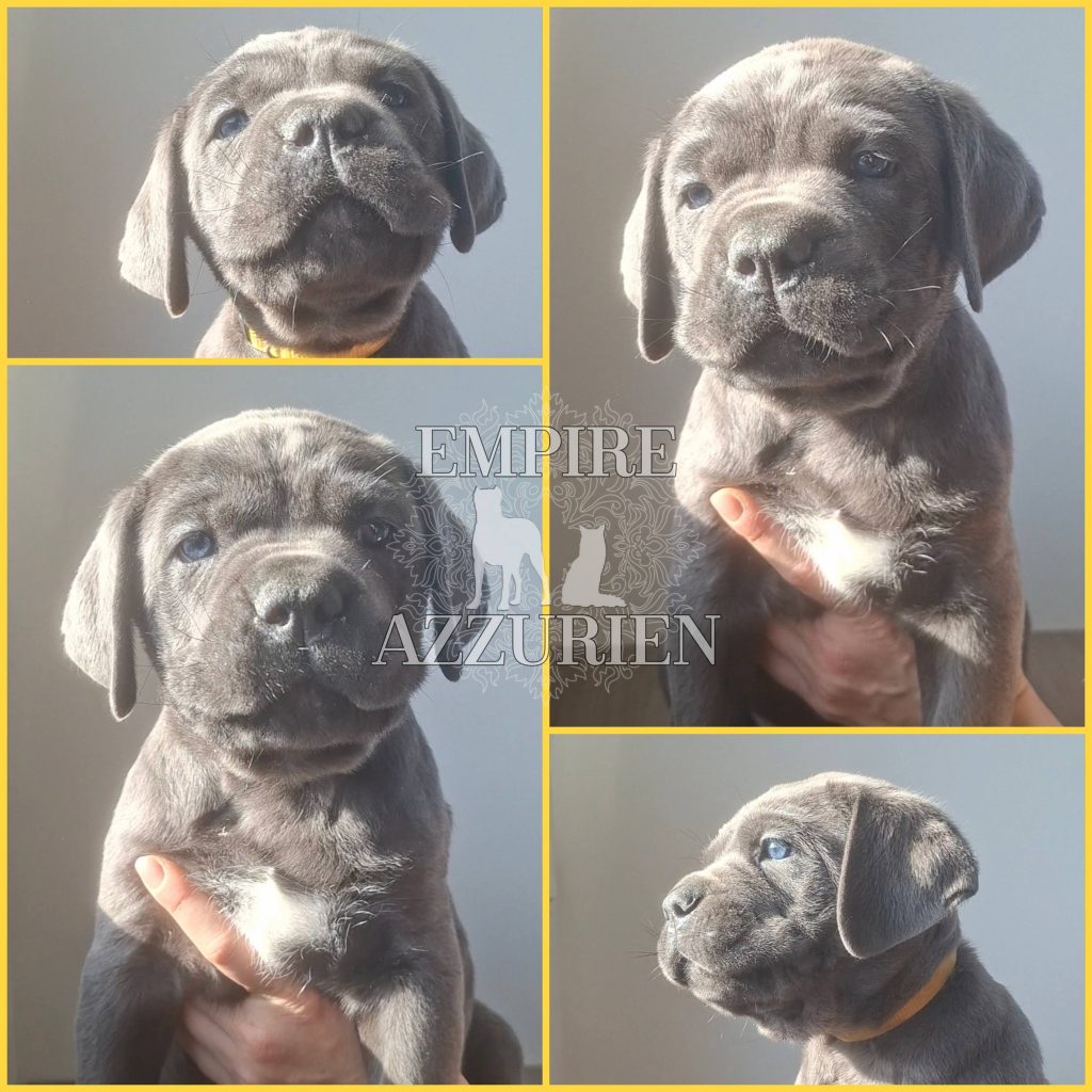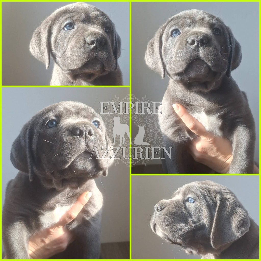Femelle grise (/bleue). Testée officiellement pour la dysplasie hanches et coudes (HD-B / ED-0). Identifiée par ADN. Négative à la DSRA : N/N.