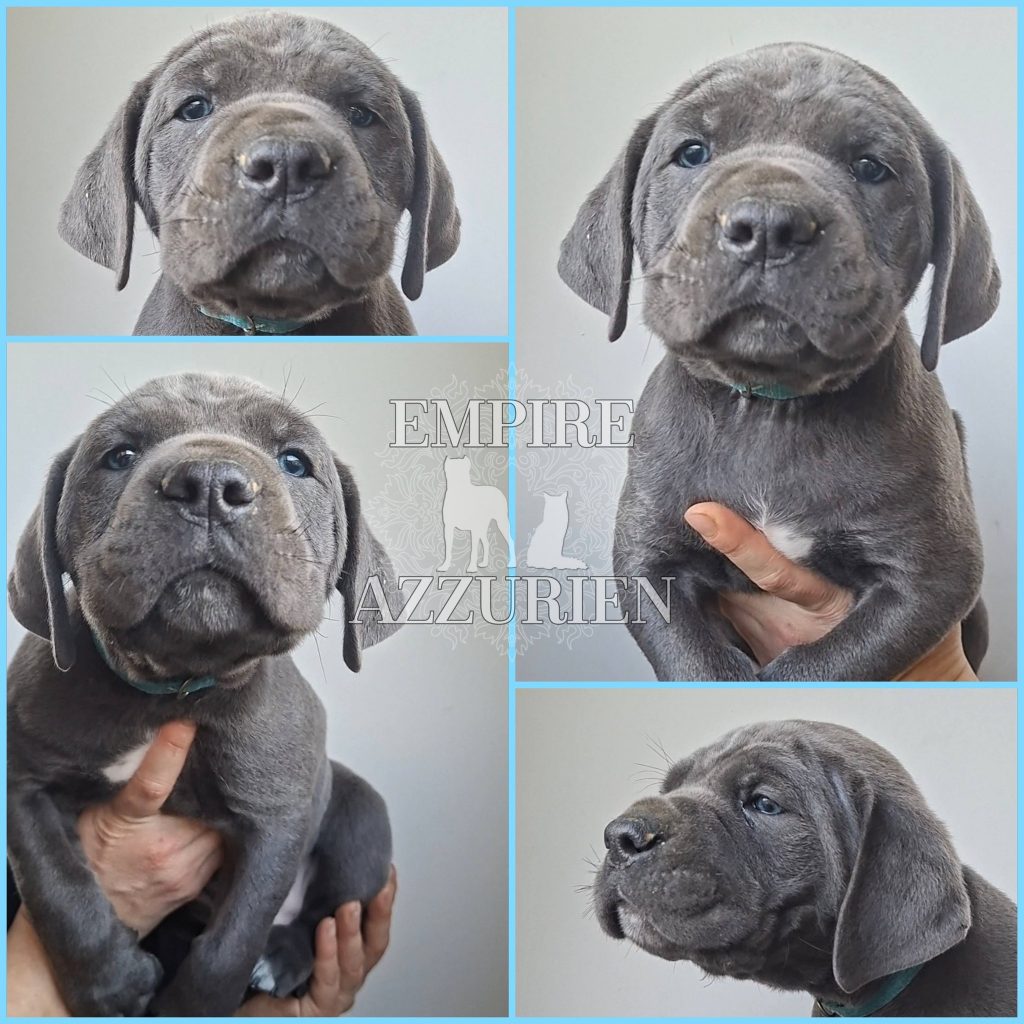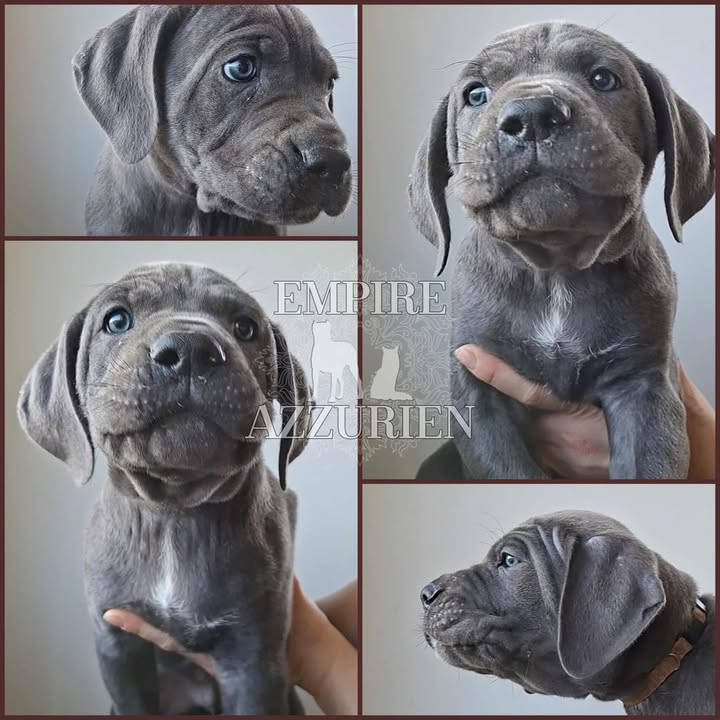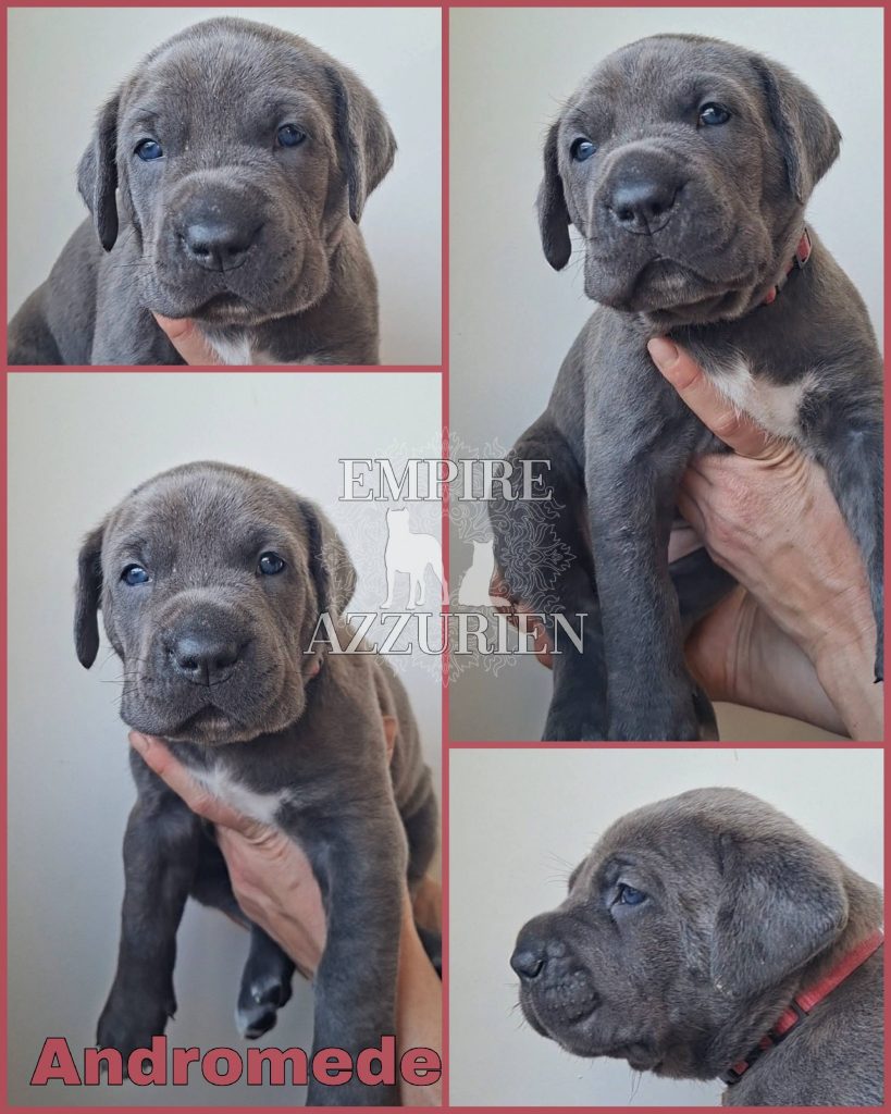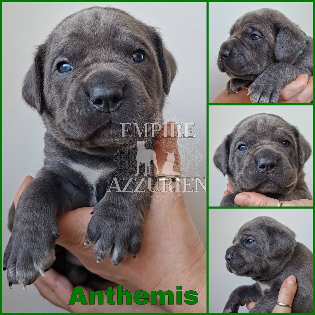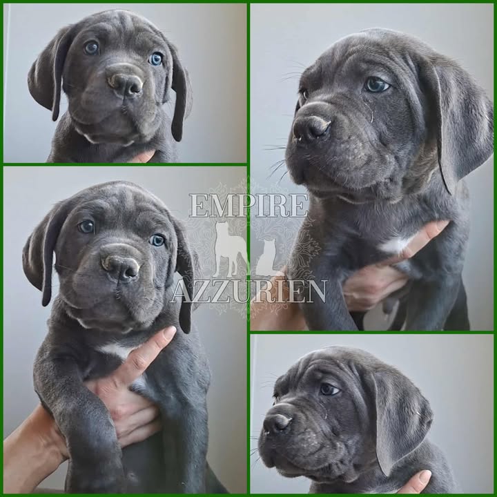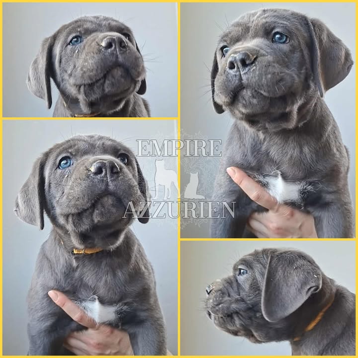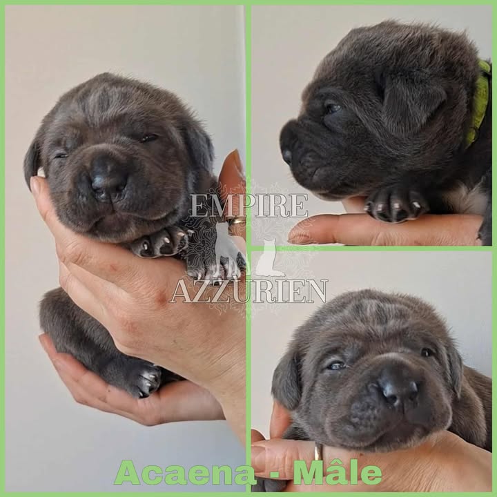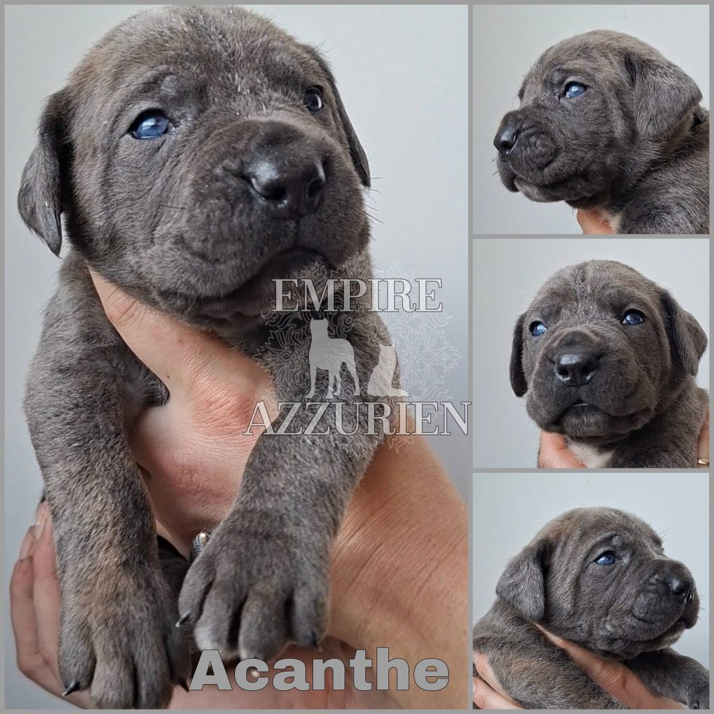 Femelle grise (/bleue). Testée officiellement pour la dysplasie hanches et coudes (HD-B / ED-0). Identifiée par ADN. Négative à la DSRA : N/N.