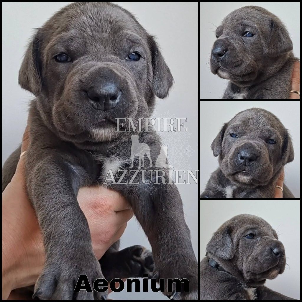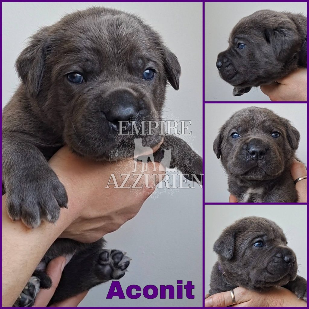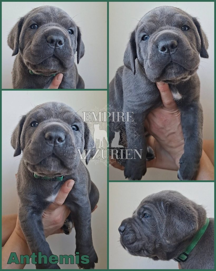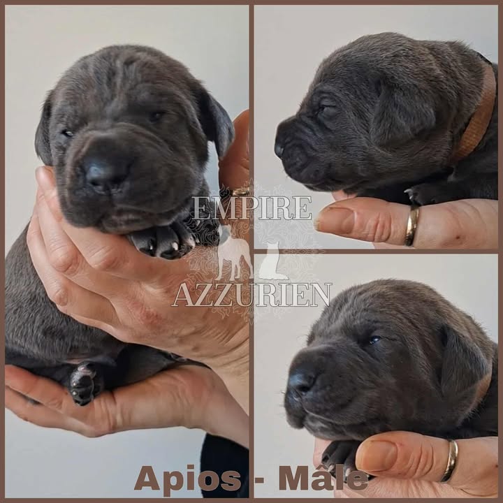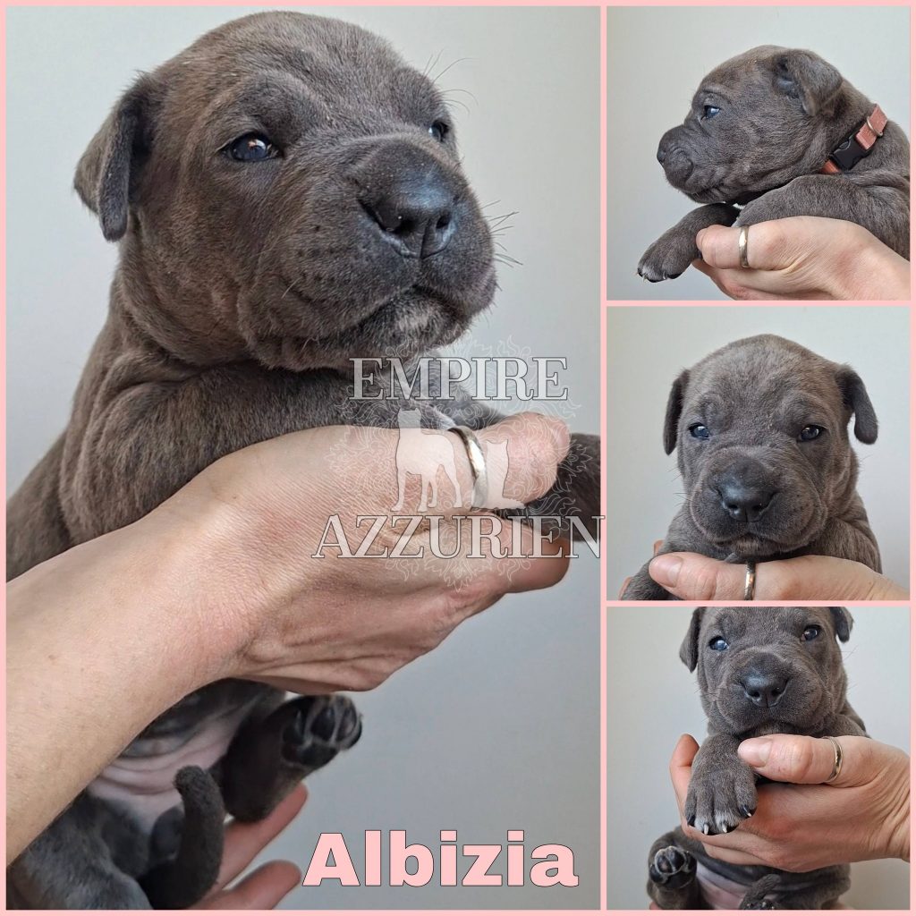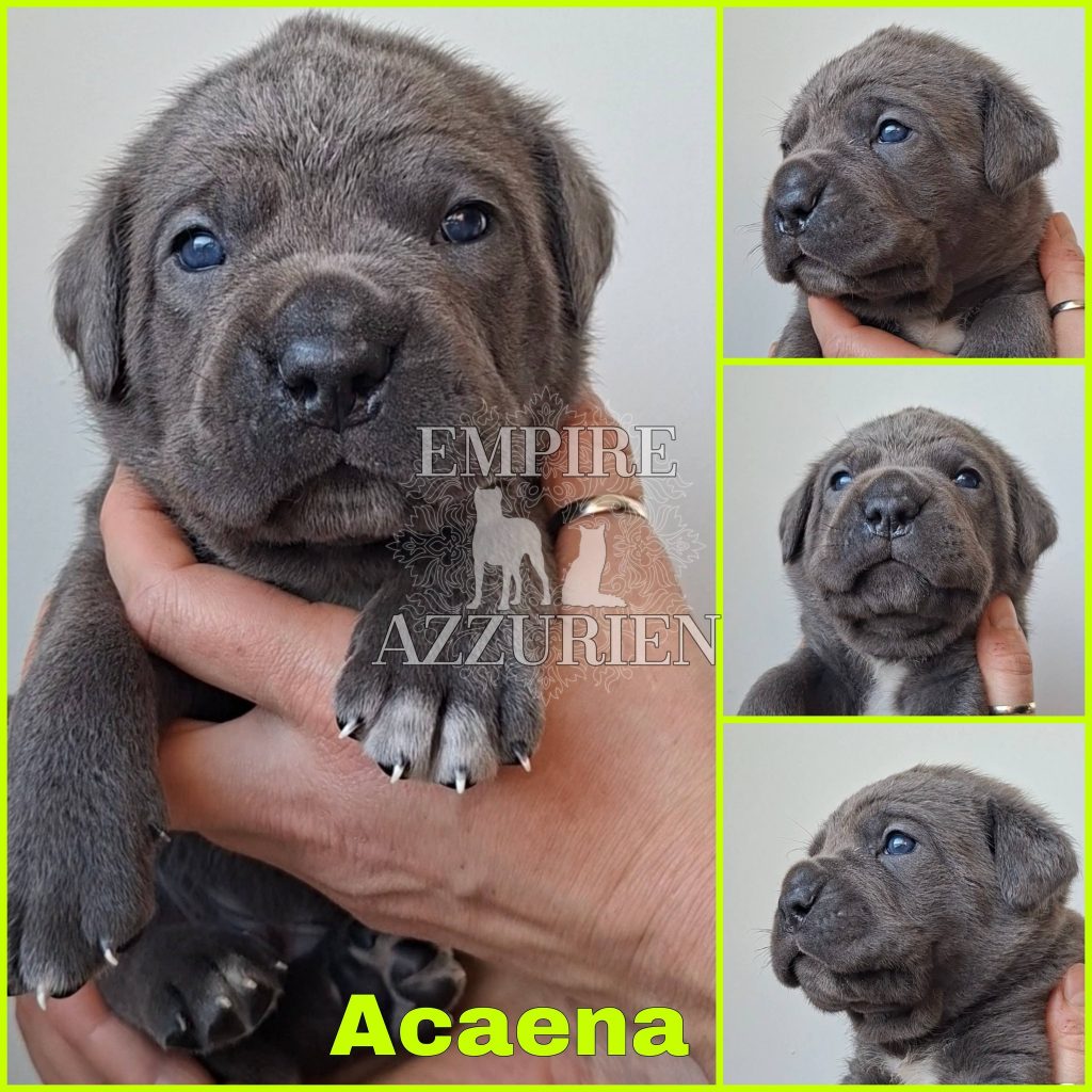 Femelle grise (/bleue). Testée officiellement pour la dysplasie hanches et coudes (HD-B / ED-0). Identifiée par ADN. Négative à la DSRA : N/N.