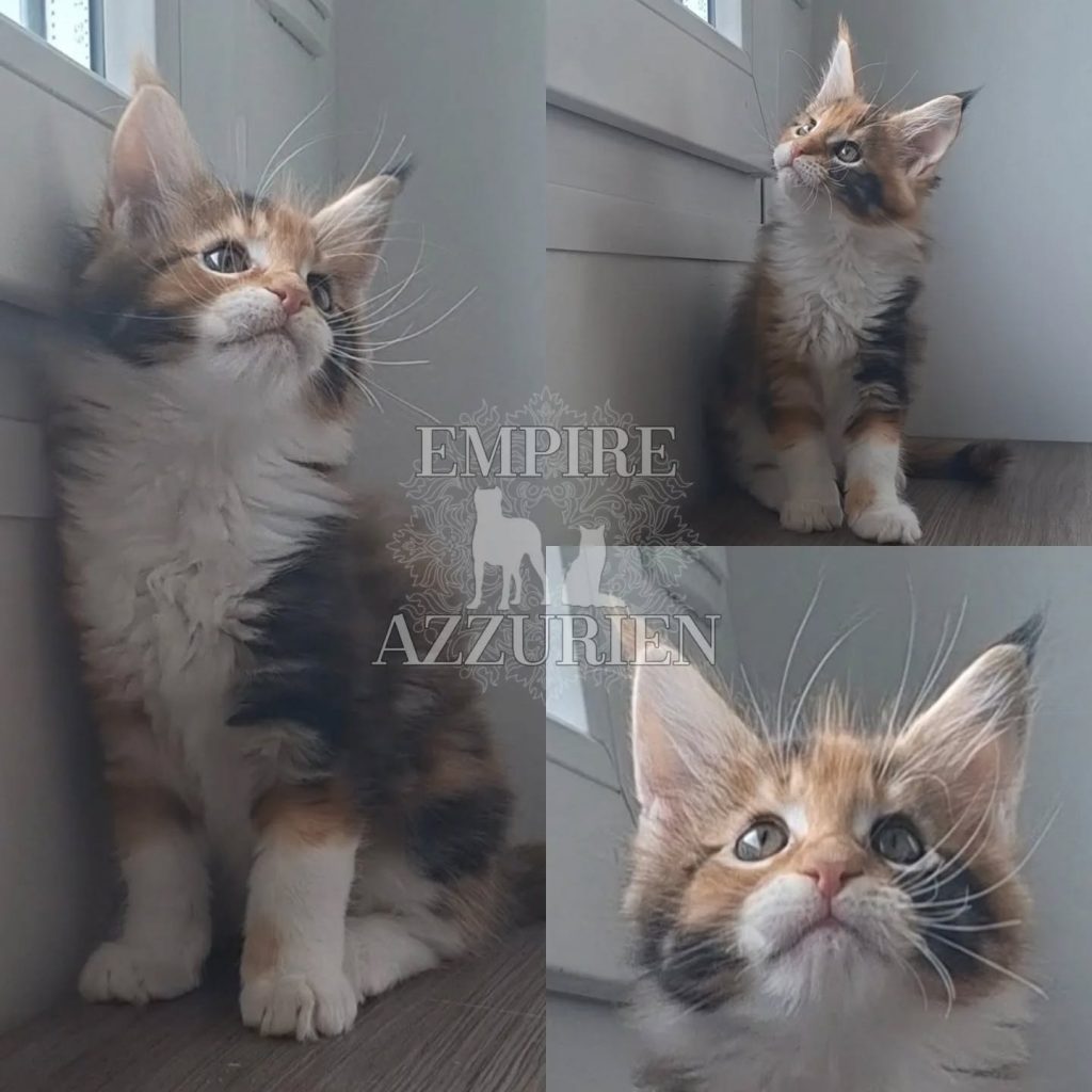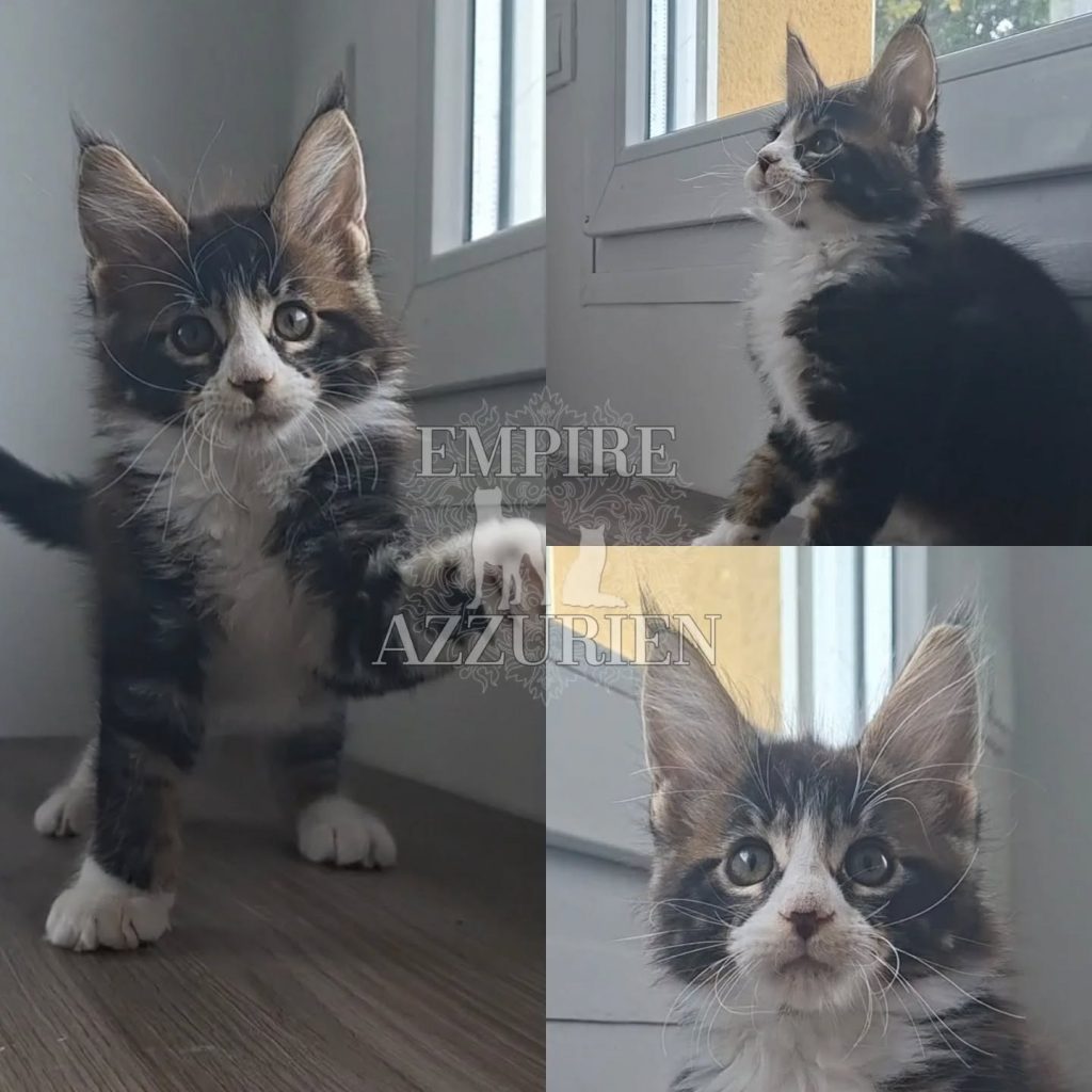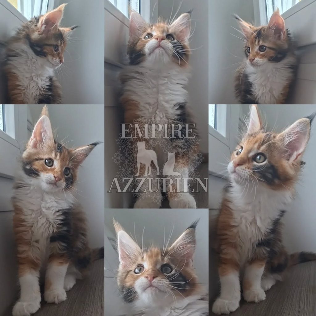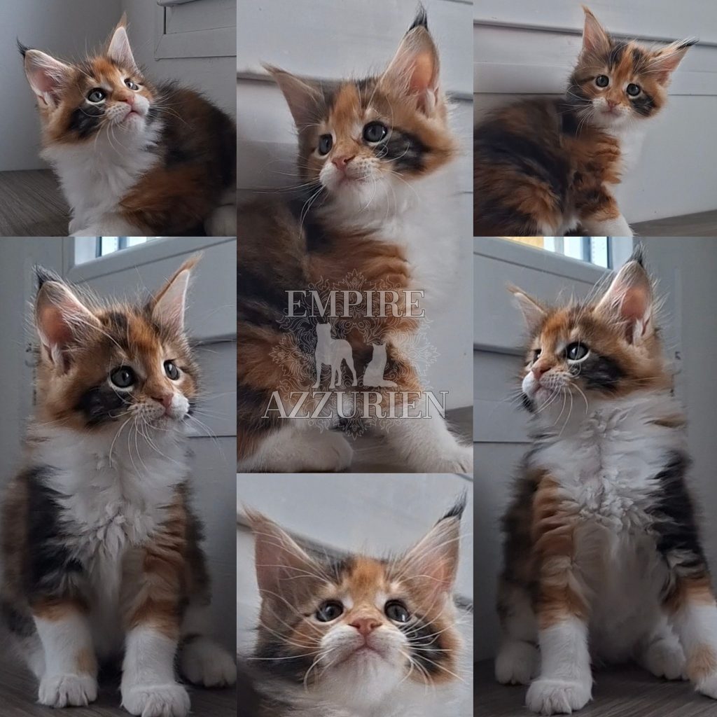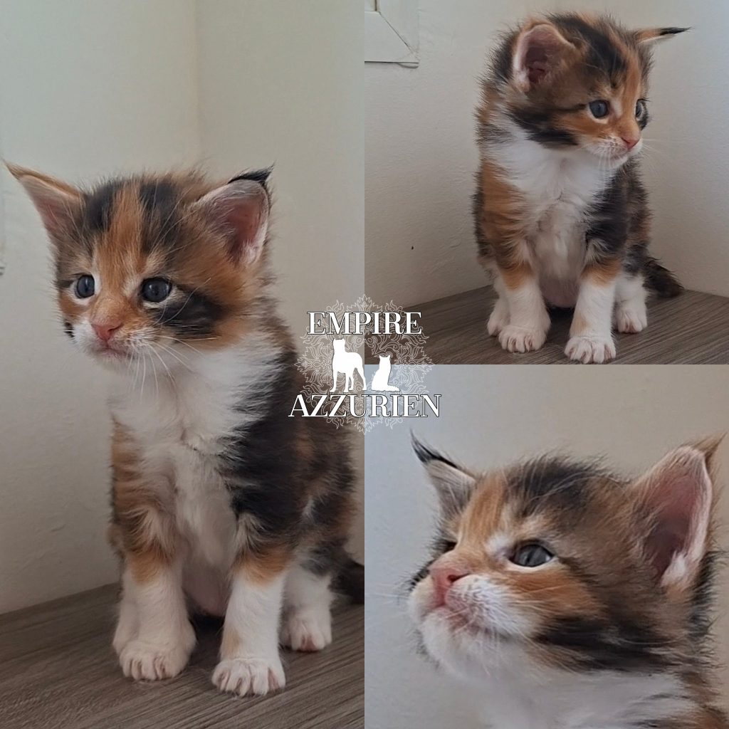 – AZRIELLE : brown tortie ticked tabby et blanc, réservée ❌