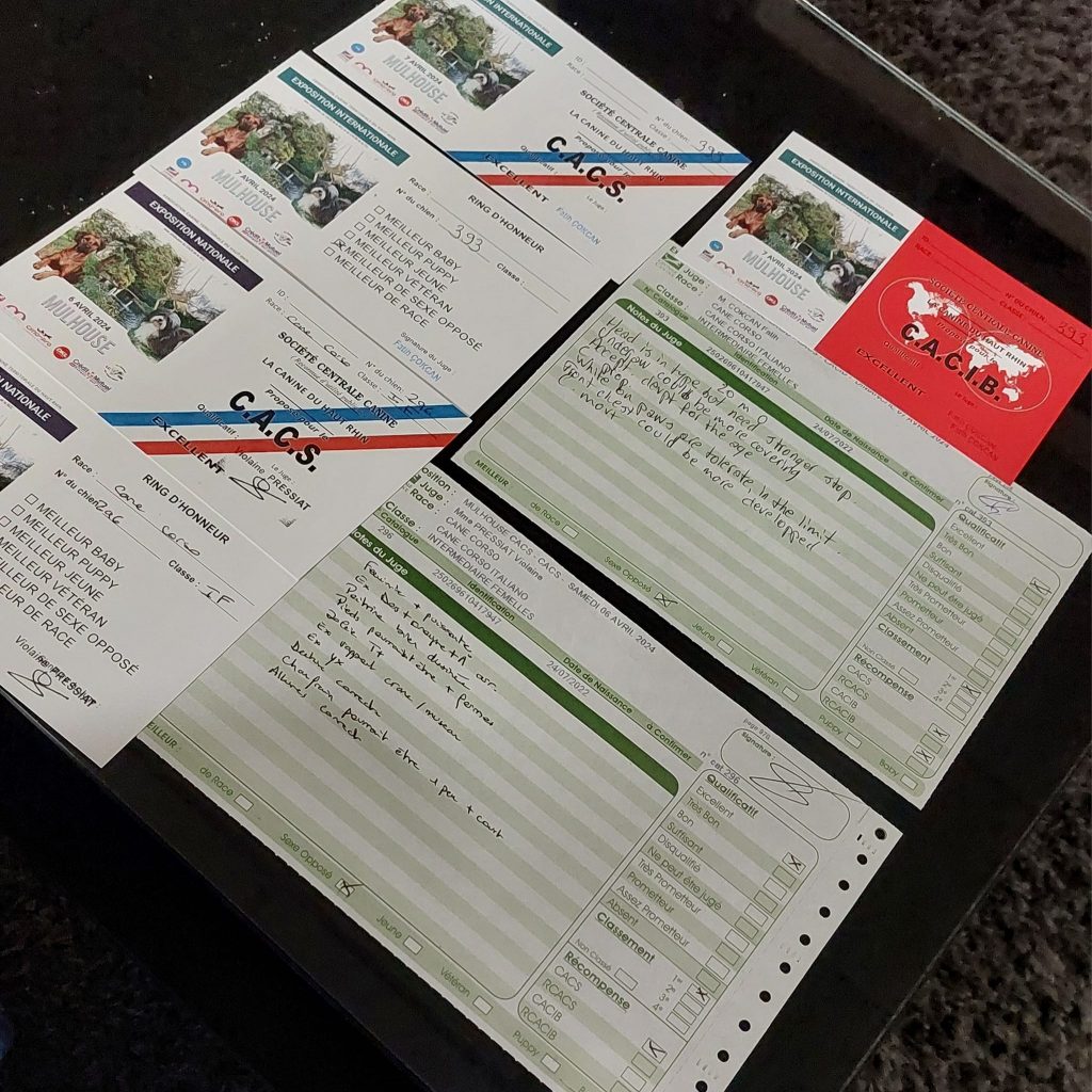 MAJ 07.04.2024 : Toscane a obtenu 4 CACS (Certificat d’Aptitude et de Conformité au Standard) et 1 CACIB (Certificat d’Aptitude au Championnat International de Beauté). Elle a fait à 2 reprises BOS (Best Opposite Sex – Meilleure de Sexe Opposé) et 1 fois BOB (Best Of Breed – Meilleure de Race).
