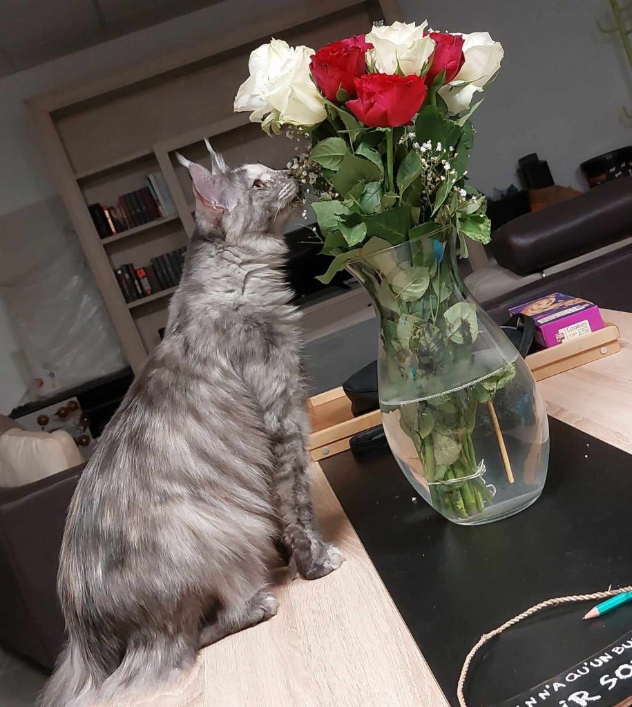 Elle apprécie la présence des autres animaux de la famille (chats ET chiens) auxquels elle vient très régulièrement demander de l’attention et de l’affection.